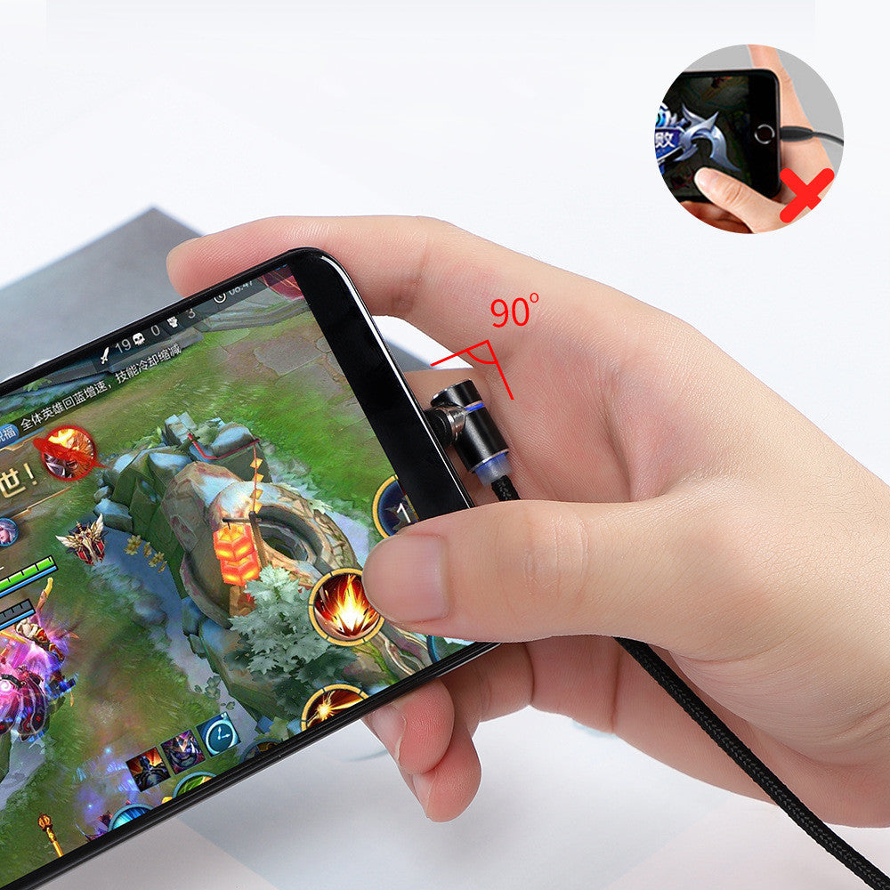 THIS IS THE FIRST EVER 360 ROTATING MAGNETIC CHARGING CABLE DESIGNED WITH A 90-DEGREE CONNECTOR WHICH ALLOWS YOU TO HOLD YOUR PHONE IN ANY POSITION WHILE CHARGING IT, SAYING BYE TO MORE BROKEN CABLES UNDER ANY CIRCUMSTANCES!