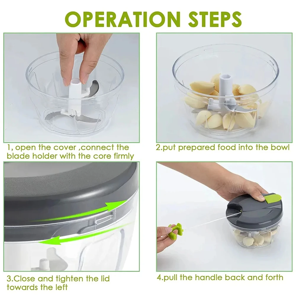 2.Usability:This product adopts a simple operation design, which can chop and stir ingredients by simply pulling the handle, without the need for complex settings or electric drive, making the operation process very intuitive and easy, suitable for all users, including those who are not familiar with kitchen appliance operation.