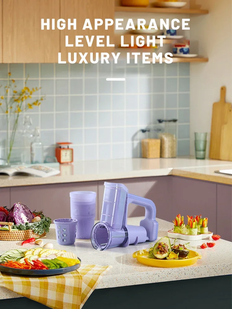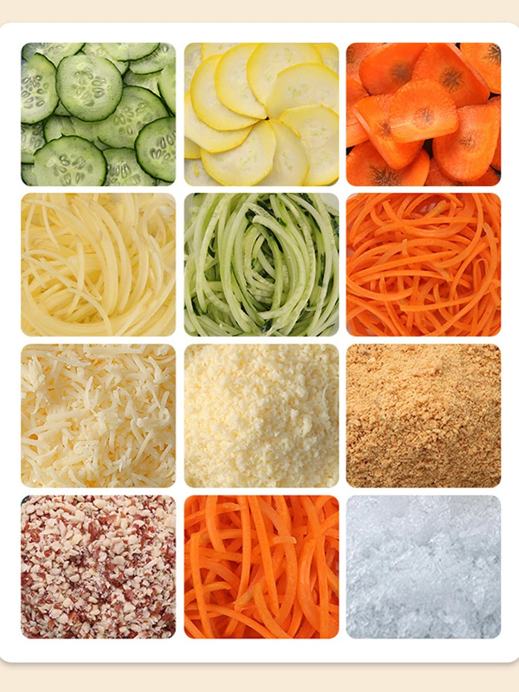 1.This innovative gadget combines the functionality of a vegetable cutter, cheese shredder, and ice shaver all in one compact device. With its powerful electric motor, you can effortlessly slice vegetables, shred cheese, and shave ice for your favorite dishes and drinks.